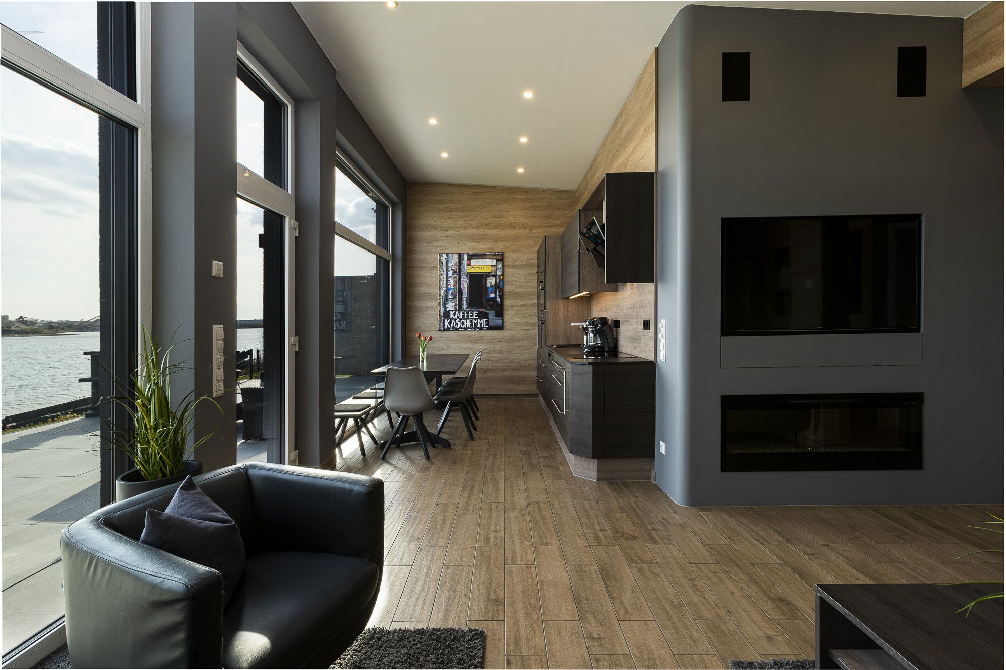 Neben der hochwertigen Ausstattung (Klimaanlage, Fußbodenheizung, Elektrokamin, Einbauküche mit modernen Geräten) erwarten Sie im barrierefreien Haus SUNSET eine harmonisch aufeinander abgestimmte Inneneinrichtung in Kombination mit einem beeindruckenden Lichtkonzept, einer gemütlichen Atmosphäre und einem dezenten Hauch von Luxus.